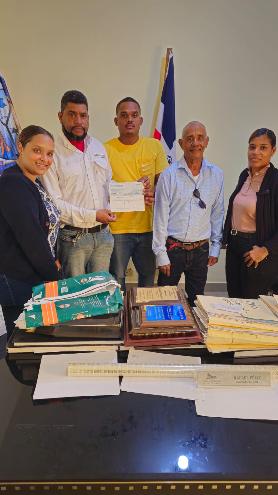 Fundación, 04/03/2025 – En un acto celebrado en el Ayuntamiento Municipal de Fundación, el alcalde Rafael Feliz, mejor conocido como «Pello», hizo entrega formal de los fondos destinados a la organización de las Fiestas Patronales 2025.
